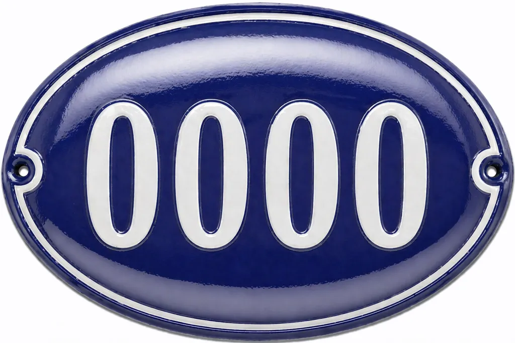Smaltované domovní číslo v oválu modro bílé