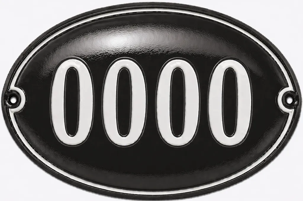 Smaltované domovní číslo v oválu černo bílé