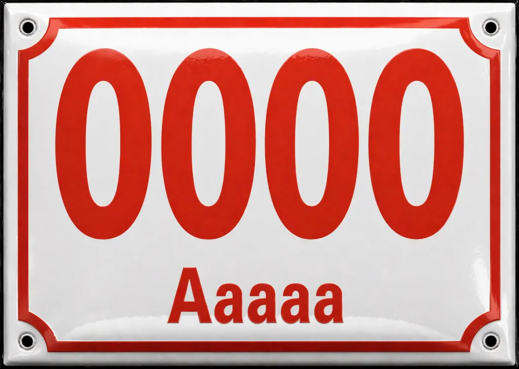Smaltované domovní číslo s textem bílo červené